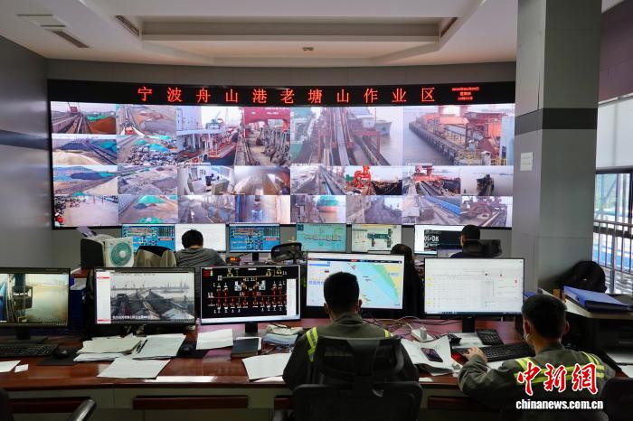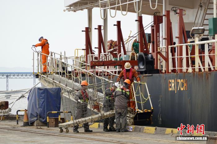 今日工人掌握门机交卸年夜豆。中新社记者 刘子琳 摄